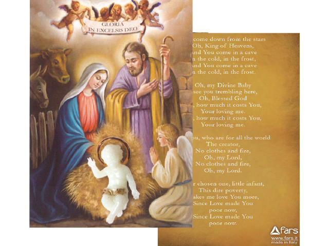 Luminous plastic Baby Jesus presented on holy card