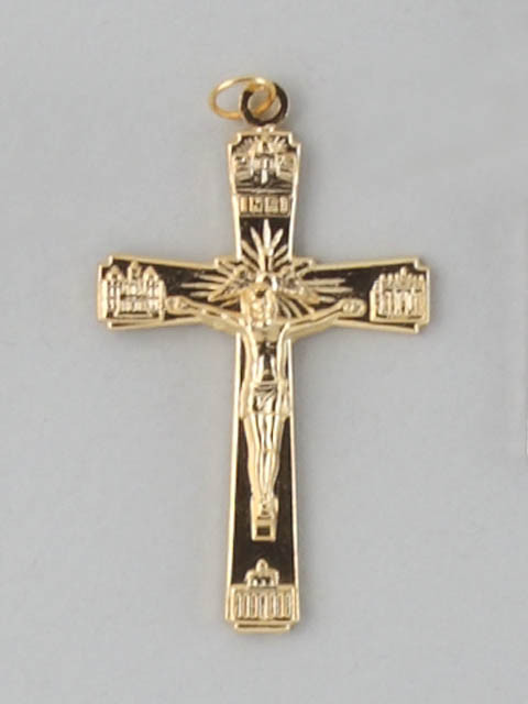 Click the button below to add the Crucifix Pendant: 4 Basilica 5cm Gilt (CRM50G) to your wish list.